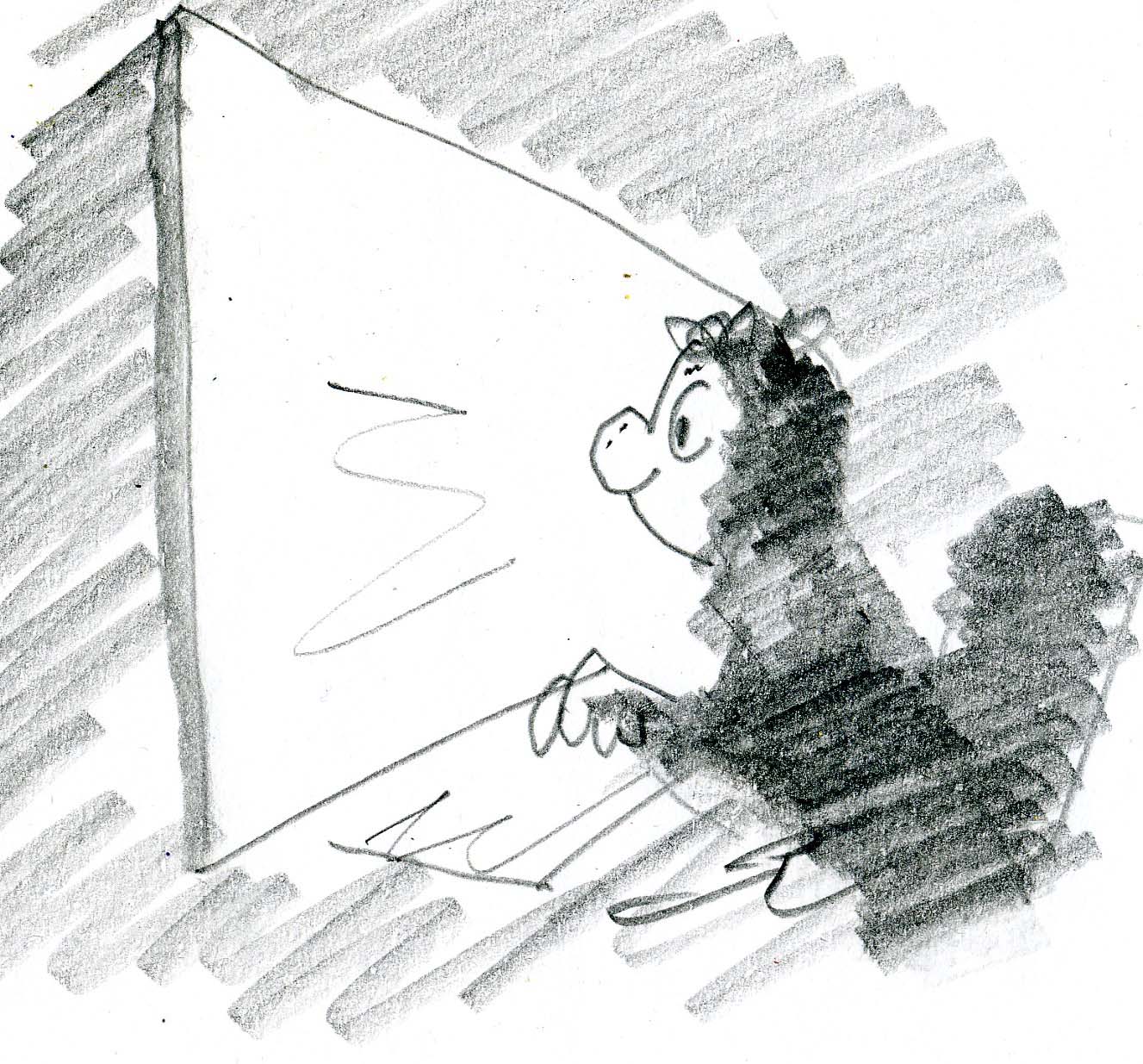 Dunkler Hintergrund mit heller und ausreichend großer Schrift auf allen Monitoren und Projektionsflächen. Texte müssen auch in den letzten Reihen großer Hörsäle leicht lesbar sein. Die zu oft verwendete blaue Schrift verschwindet jedoch vor schwarzem Hintergrund; blaue Schriftzeichen ‚fallen‘ in das zentrale (‚tritanope‘) Blauskotom, in den Maxwell spot.