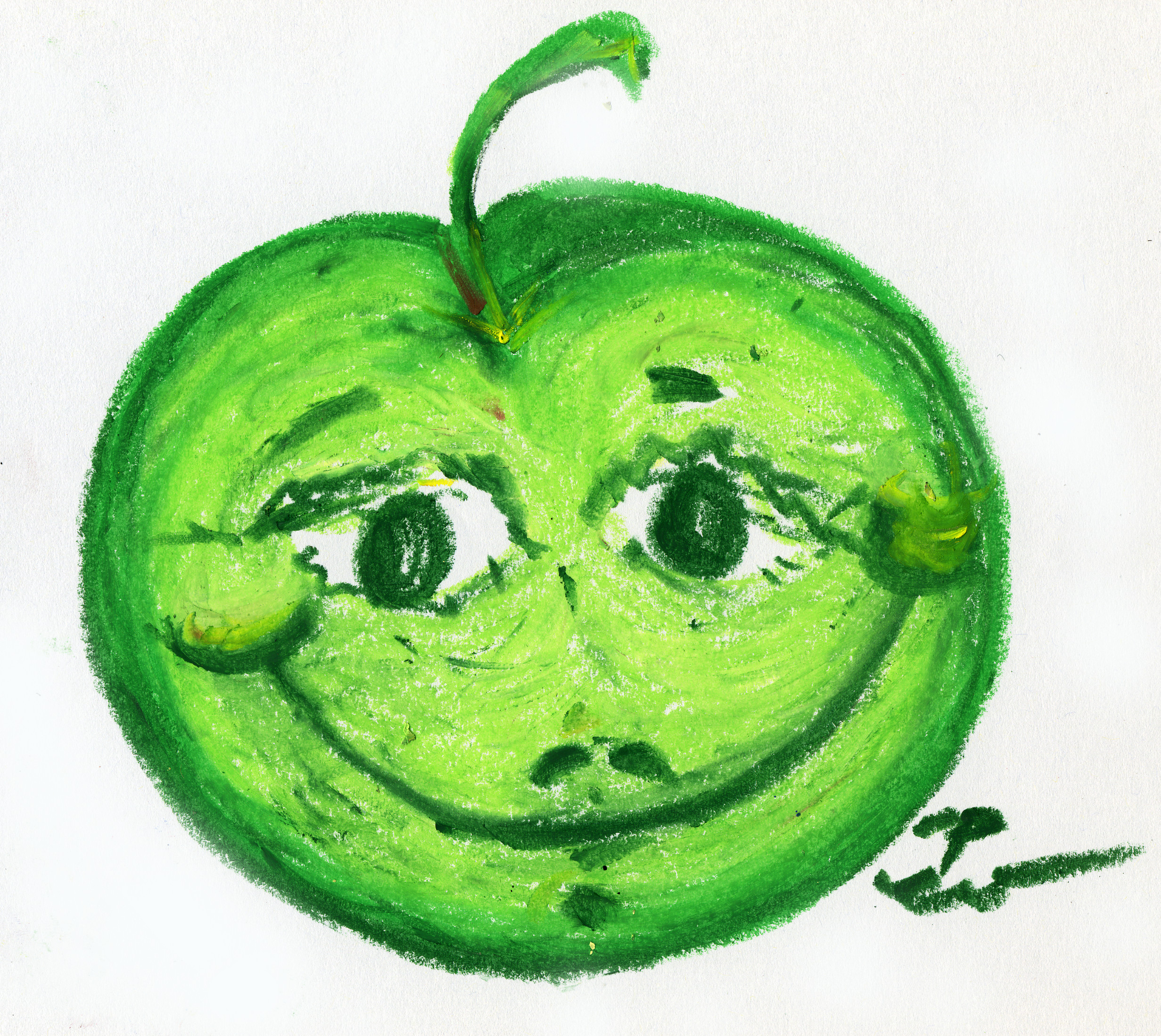 Abschließend – zur Macht der Bilder: Spiegelneurone & Co. Der „Happy Apple“ lässt im Augenblick das Gehirn mitschmunzeln, wie hypnotisiert. Bilder können sich einbrennen ins Gedächtnis. In weiten Bereichen des Cortex lassen sich Reaktionen nachweisen, welche auf die Aktivität der Spiegelneurone zurückzuführen sind (MR, fMRT, TMS, PET). Auch im Frontallappen und – im supplementär-motorischen Cortex. Geradezu zwangsläufig wird die Handlung ausgeführt, welche auf dem Weg über die prämotorische Rinde schließlich die Bewegung stimuliert – das Schmunzeln im konkreten Fall. Vielleicht ließen sich mit einem Blick auf ein derartiges Bild sogar miesmutige Morgen-Stimmungen vertreiben..