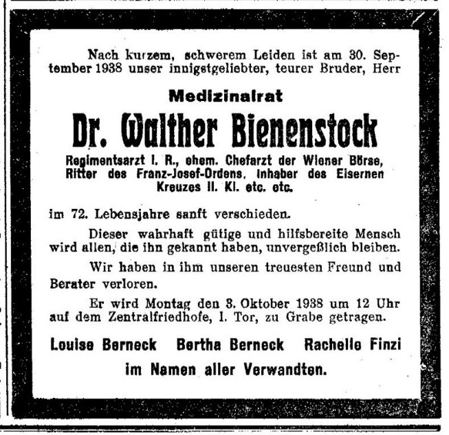 Todesanzeige: Neue Freie Presse, 2.10.1938, S. 29.